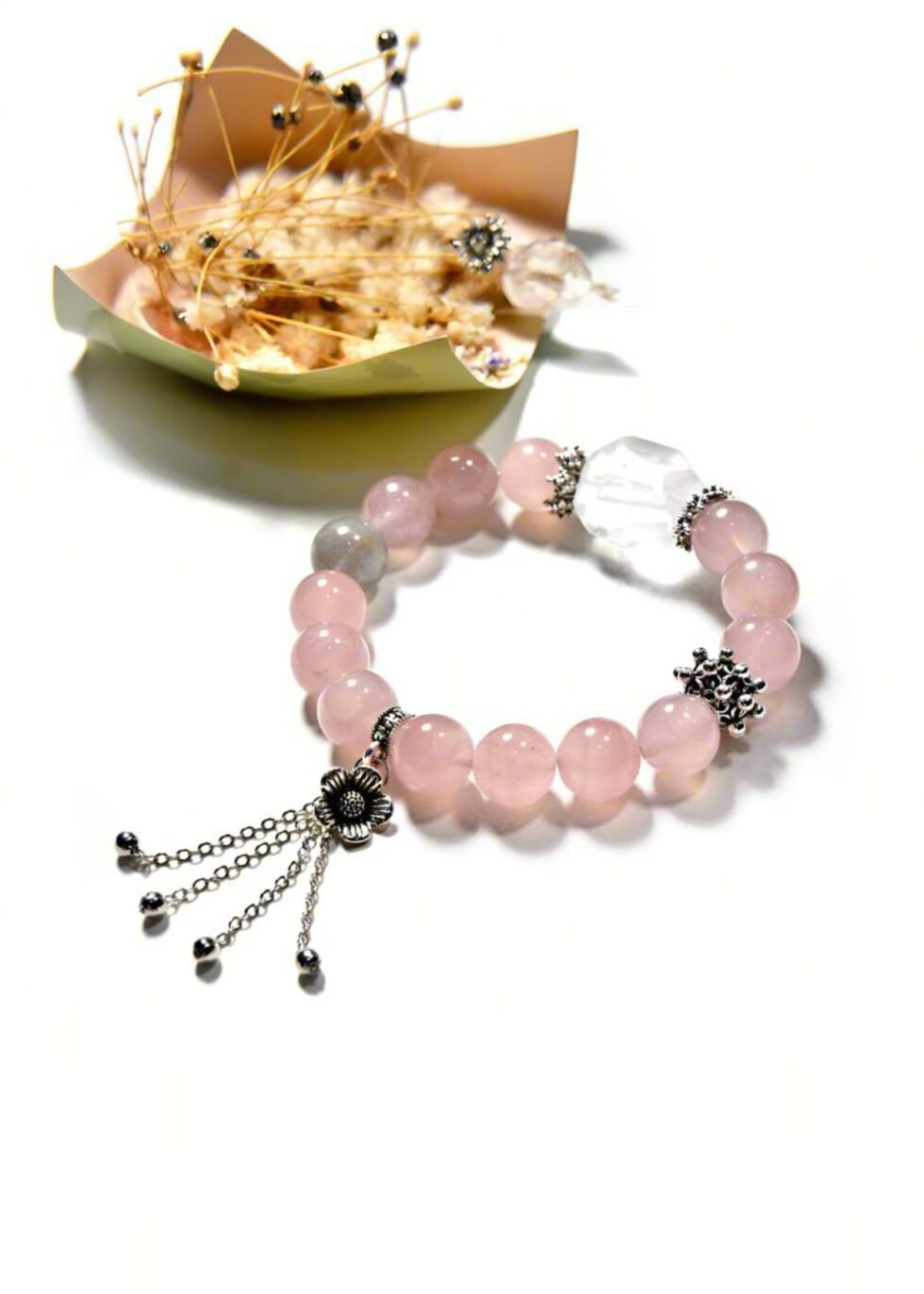 After careful selection, natural crystal rough stones are first cut into blanks, then repeatedly polished by craftsmen with grinding wheels. From angular to round and full, each bead undergoes thousands of rotations and polishings, finally showing a delicate luster and retaining the natural texture of the crystal itself.